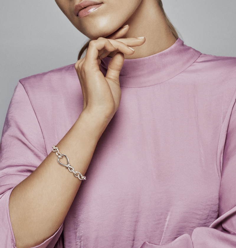 É o dobro do amor com a interpretação única do símbolo do infinito. O nó icônico envolve o centro assimetricamente definido para significar a força da conexão. Esta robusta pulseira de nó infinito em prata 925 é a representação perfeita de um vínculo inquebrável e uma adição clássica à sua coleção de pulseiras. O fecho infinito abre e pode ser estilizado com até dois pingentes.