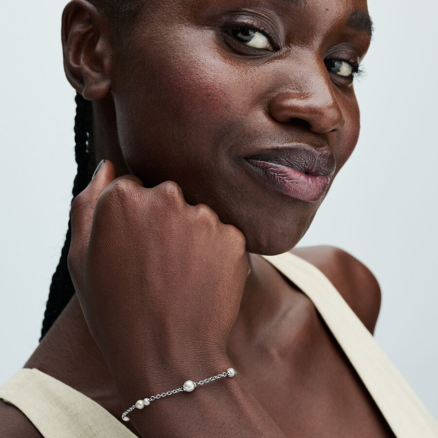 Adicione interesse ao seu look com a nossaPulseira Perolas de Agua Doce. Sete pérolas de água doce tratadas, cada uma em tamanho único, são elegantemente espaçadas ao longo da corrente, criando uma peça atemporal e versátil. O emparelhamento e o espaçamento intencionais refletem a beleza da individualidade. Com um fecho ajustável e um toque de brilho de uma pedra cúbica de zircónia, esta pulseira celebra pérolas clássicas. Por favor, note que cada pérola cultivada de água doce tratada é única e pode variar em tamanho e cor; Pode ocorrer desgaste normal com este material. Nossas pérolas cultivadas em água doce são tratadas com clareamento e realce de brilho.
