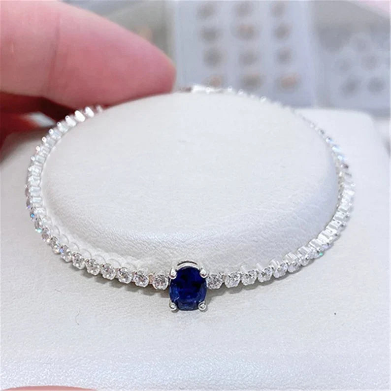 Traga elegância ao seu look com a Pulseira Riviera de Pavé Cintilante. Com acabamento à mão em prata 925, esta pulseira apresenta um grande cristal azul princesa oval cravejado de pinos centrais emoldurado por uma fileira de pavé de zircônias cúbicas transparentes. A pulseira inclui um fecho lagosta para fechamento seguro e pode ser ajustada em três comprimentos. Estilize este design sozinho ou com outras peças brilhantes para um visual clássico que se destaca.